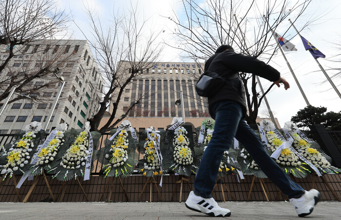 | ▲ 윤석열 체포영장 발부한 서부지법 앞에 尹지지자들이 보낸 근조화환 (사진=연합뉴스) |