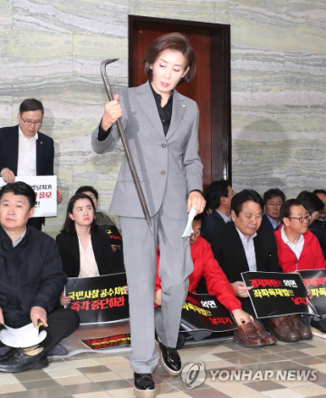 | ▲ 2019.4.26 당시 자유한국당 나경원 원내대표가 긴급 의총에 빠루를 들고나온 모습 (사진=연합뉴스) |