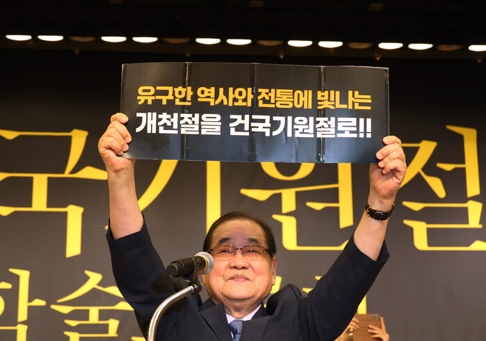 이종찬 광복회장은 6일 개천절을 건국기원절로 바꾸자고 주장했다.