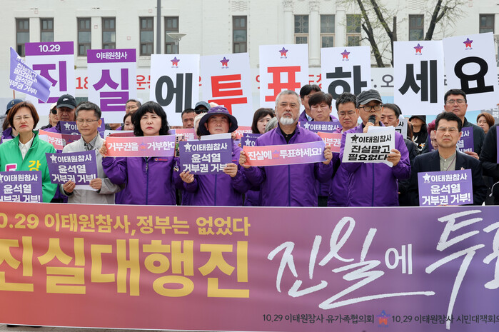 10·29 이태원참사 유가족협의회와 시민대책회의는 5일 "재난 참사 피해자를 위해, 안전 사회를 위해 진실에 투표해달라"고 호소했다.