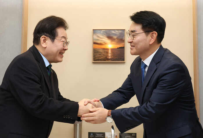 이재명 더불어민주당 대표가 21일 비명계 인사인 박용진 전 민주당 의원을 만나 당에서 큰 역할을 해달라고 요청했다. 박 전 의원도 총선 과정에서 악연을 털고 힘을 합치자고 했다.