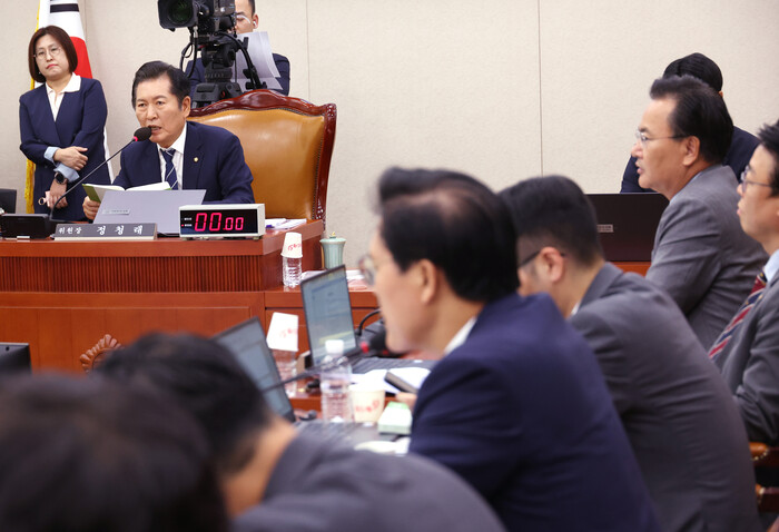 정청래 법사위원장은 "강씨는 원래 어제 행안위 국감 증인으로 채택이 됐는데 (본인이) 법사위에 나오는 게 좋다고 해서 불출석 사유서를 행안위에 냈다"고 말했다.
