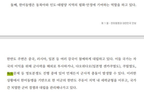 한편, 외교부는 국방부가 최근 발간한 장병 정신교육 교재에 대한민국 고유 영토인 독도를 영토분쟁이 진행 중인 지역으로 기술한 데 대해 "독도에 대한 영유권 분쟁은 존재하지 않는다"고 재차 밝혔다.