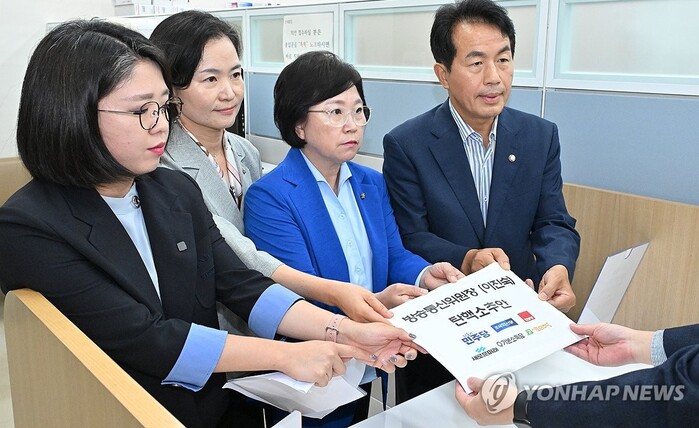 | ▲탄핵안 제출하는 방통위원들 (사진=연합뉴스) |