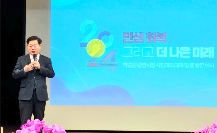 박승원 광명 시장이 ”시민을 찾아 격려하는 시민과의 대화“로 15일~25일까지 9일간 관내 18개 동을 연달아 방문해 시민의 목소리를 경청했다.