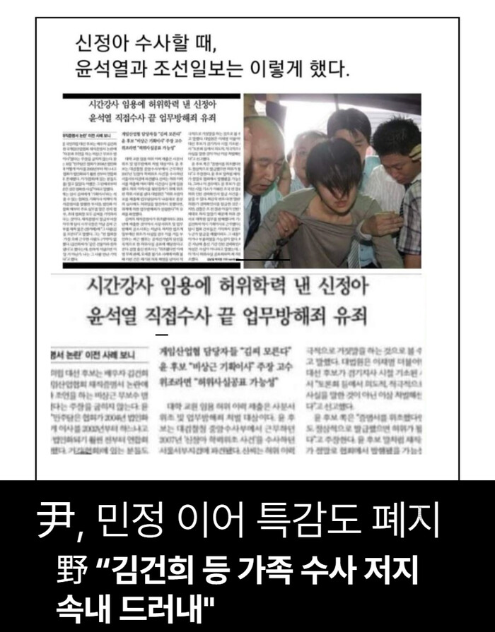 | ▲ 윤석열의 공정성...신정아사건과 부인 김건희에 대한허위학력 범죄를 대하는 검찰 윤석열과 조선일보 행태 |