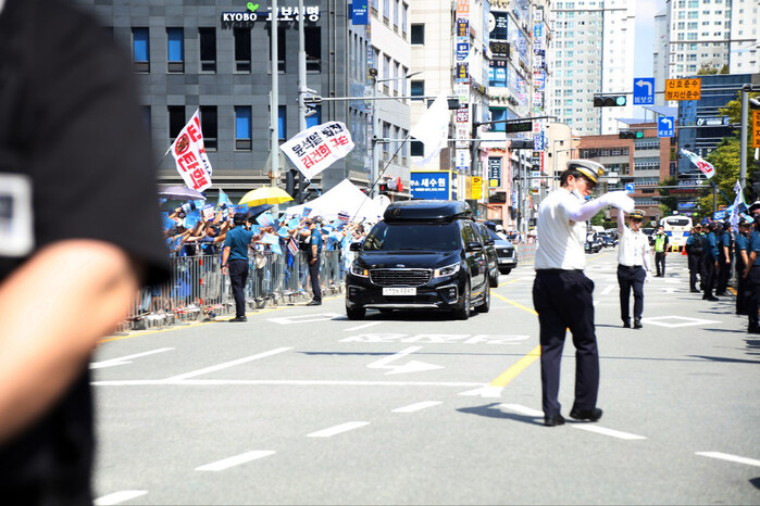 | ▲이재명 당대표를 태운 차량이 들어오고 있다 (사진=시사타파뉴스 이만우) |