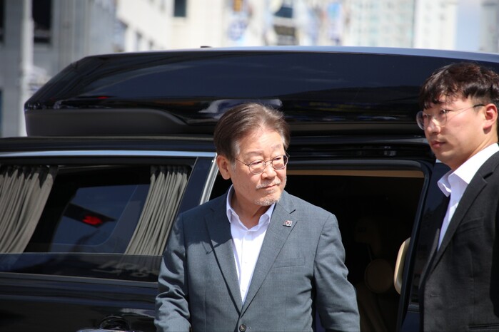 | ▲차량에서 내리는 이재명 대표 (사진=시사타파뉴스 이만우) |