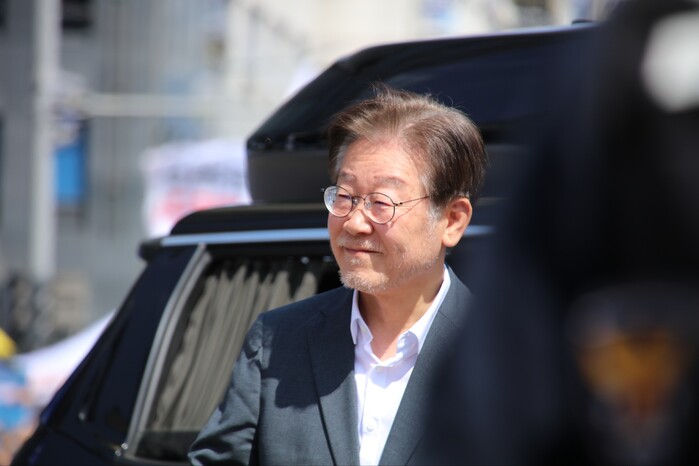 | ▲수척한 모습이 역력하지만 시민들을 향해 미소를 보내는 이재명 대표 (사진=시사타파뉴스 이만우) |