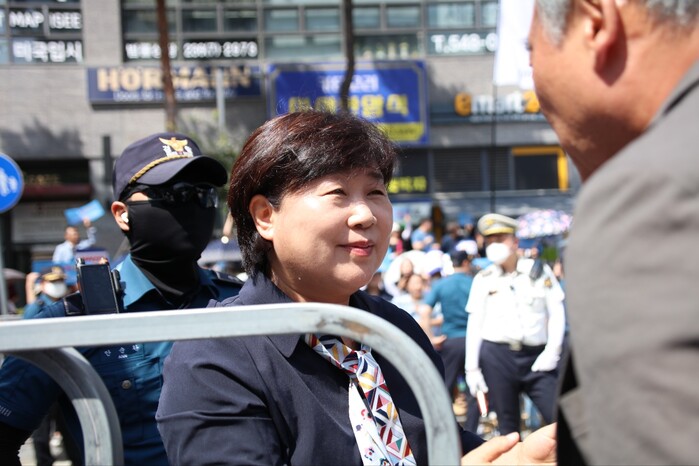 | ▲거리 중앙으로 나와 다시 인사하는 이재명 대표 (사진=시사타파뉴스 이만우) |