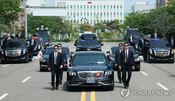 | ▲ 대통령경호처 경호관들이 탑승한 차량들이 대통령 취임식 차량 퍼레이드 훈련하는 모습 2025.5.27 (사진=연합뉴스) |