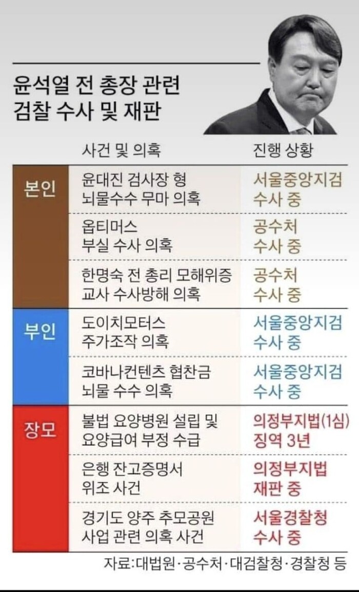 9일 보도에 따르면 윤석열 후보와 가족·측근이 수사 대상인 건수는 서울중앙지검 6건, 공수처 4건이다. 재판은 징계처분 취소소송 항소심이 진행 중이다. 장모 최은순씨도 재판 2건이 진행 중이다.