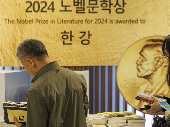 | ▲한강 작가의 책을 품에 안은 시민 (사진=연합뉴스) |