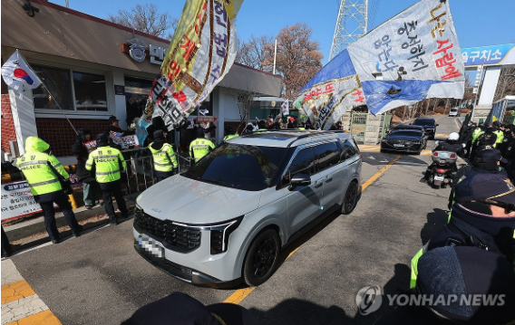 | ▲ 3일 서울구치소 앞 면회 마친 국민의힘 지도부 차량 (사진=연합뉴스) |