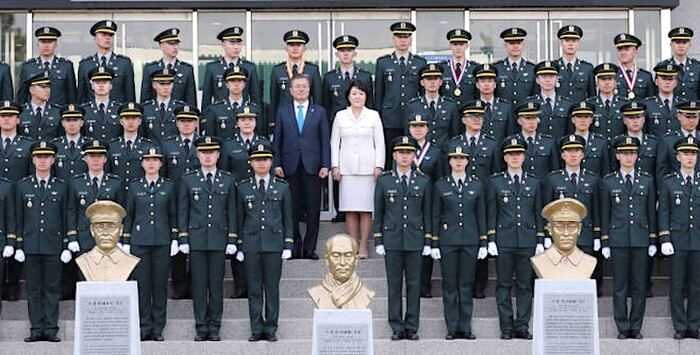 | ▲문재인 대통령의 육사 흉상 앞 기념 사진 (사진=육군) |