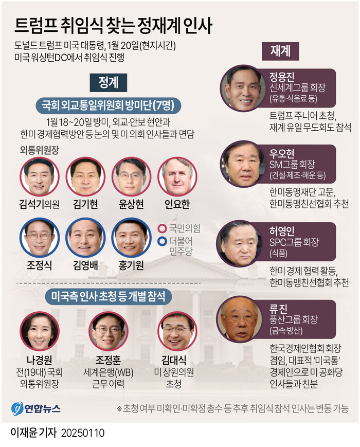 국민의힘 의원들이 오는 20일 도널드 트럼프 미국 대통령 당선인 취임식에 참석하기 위해 18일 출국했다. 이들은 트럼프 당선인을 만나 "한국의 정치 실상을 알리겠다"고 자청했다.
