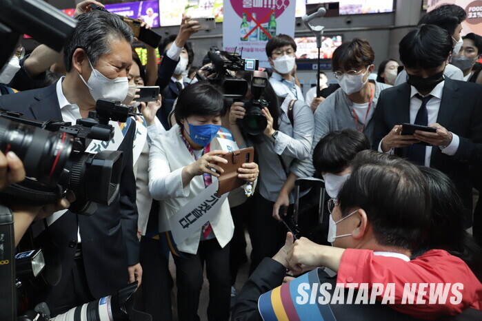 | ▲ 용산역에 도착한 민주당 지도부 |