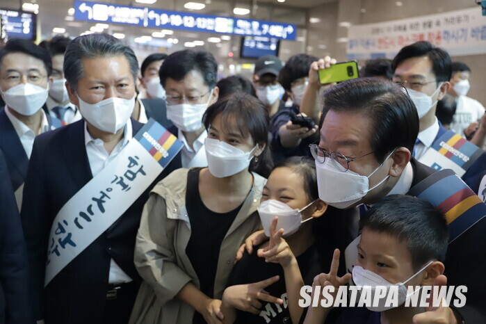 직접 지하철로 이동하여 용산역에 도착한 민주당 지도부는 ‘함께 웃는 한가위’, ‘민생부터 챙기겠습니다’가 적힌 어깨띠를 착용하고, 귀성객들과 만났다. 이재명 대표를 만난 시민들은 너도나도 셀카를 요청하며 훈훈한 분위기를 자아냈다. 이 대표는 지나가던 도중 만난 군인에게 거수경례를 하는 센스도 발휘했다. 이 대표는 갑자기 몰린 인파로 혼잡한 순간에도 노련한 모습으로 시민과의 소통을 이어갔다. 서영교 최고위원은 이 대표와 시민의 사진을 직접 찍어주며 화기애애한 분위기를 연출했다. 정청래 수석 최고위원 또한 이 대표의 옆을 지키며 시민들과 즐거운 시간을 보냈다.