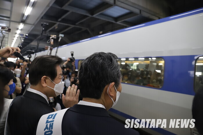 이후 이 대표를 비롯한 지도부는 용산역 승강장 플랫폼으로 이동해 여수행 KTX에 탑승한 귀성객들에게 “고향 잘 다녀오시라”고 인사하며 손을 흔들었다. 이 대표는 객실 안에서 시민이 흔드는 손을 놓치지 않고 창문에 손을 맞대는 장면을 연출하며 현장에 웃음꽃을 피우기도 했다.