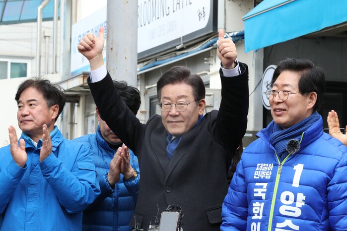 이 대표는 "이 심판 선거의 중심은 바로 충청"이라며 "충청에서 이겨야 전국에서 이길 수 있다. 민주당의 이 절박한 호소를 여러분이 승리로 격려해 달라"고 지지를 호소했다.