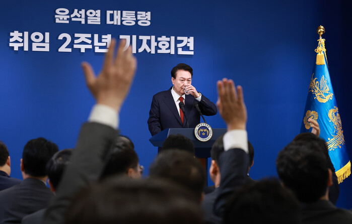 윤석열 대통령이 9일 용산 대통령실에서 취임 2주년 기자회견을 진행한 가운데 야권은 물론 여권 일각에서도 수위 높은 비판이 이어졌다.