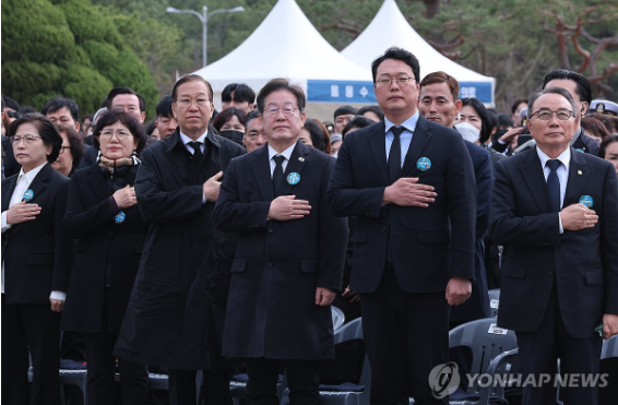 | ▲ 28일 국립대전현충원에서 서해 수호의 날. ㅣ념식에 참석한 이재명 더불어민주당 대표 (사진=연합뉴스) |