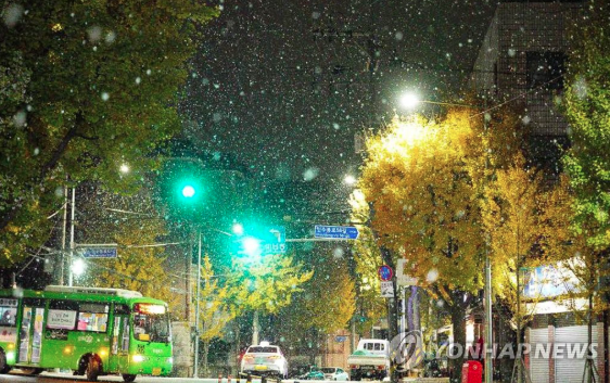 서울에서 26일 첫눈이 내리면 평년(11월 21일)보다 5일가량 늦게 눈이 내리는 셈이다. 지난해(11월 17일)보다는 10일가량 늦은 수준이다.