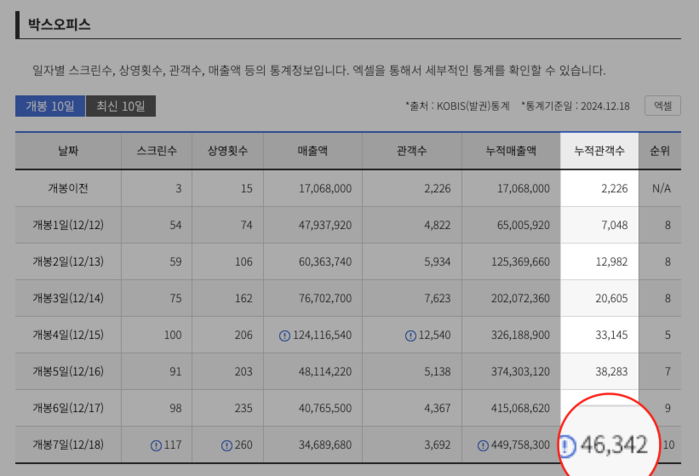 | ▲ 영화 '퍼스트레이디' 누적관객수 집계 및 통계 |