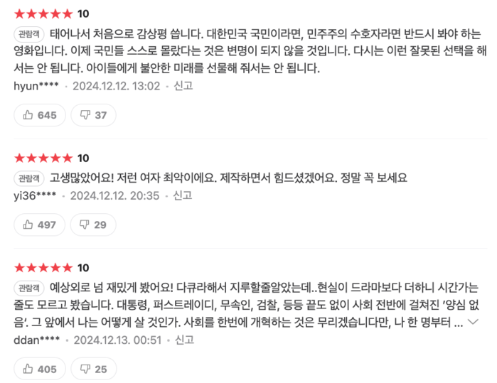 퍼스트레이디는 불법 계엄 사태와 탄핵 가결 이후 관객들이 영화에 관심을 갖고, 단체 대관 등 시민들의 자발적 이벤트도 많아 앞으로 더 큰 흥행도 문제 없어 보인다.
