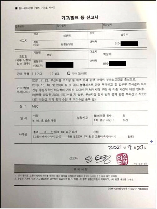 9. 23. 제 변호인으로부터 국민권익위 처리결과 통지를 전달받고 피디수첩 인터뷰 신고도 마쳤습니다. 부산지검 고소장 위조 등 은폐건에 대해 언제 고발하냐고 묻는 분들이 많았었는데, 국민권익위원회에서 처리 중인 상황이라 ‘공수처로 사건이 가고 있다’고, 두루뭉술하게 답했었는데, 공수처에 접수되었음을 이제 밝힙니다.” (5일 임은정 부장검사 페이스북글 중에서)