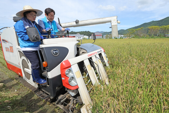 | ▲콤바인 몰고 있는 이재명 대표 (사진=연합뉴스) |