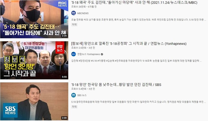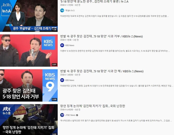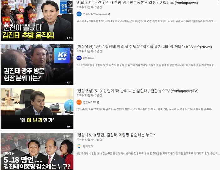 아래, 과거 김진태 망언을 다룬 뉴스들이 인터넷상에 공유되고 있다.