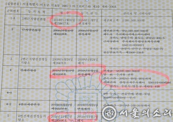 -삼성전자 선순위6억원 근저당,김명신(김건희 개명전이름)"7억 원 전세권 설정"?