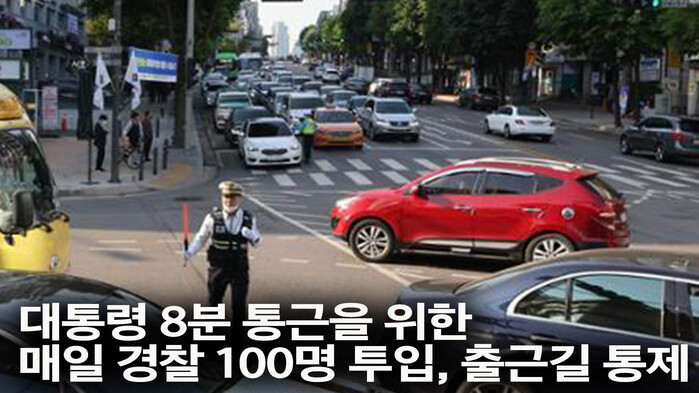 서울 서초구 자택에서 용산구 집무실까지, 원활한 출퇴근을 위해 윤 대통령 차량이 지나는 7㎞ 구간의 교통 통제에 매일 경찰 70여 명이 투입되면서 시민 출근길의 자유가 억제 되는 모양새다.