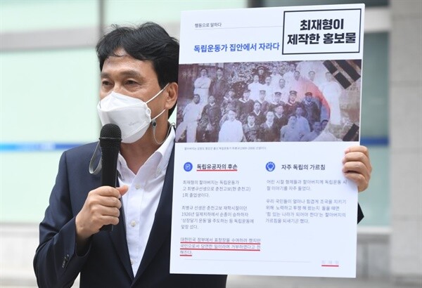 | ▲ <가짜 독립유공자 후손, 친일행적 최재형 후보 규탄 기자회견 (21.08.13)> ⓒ 안민석 |