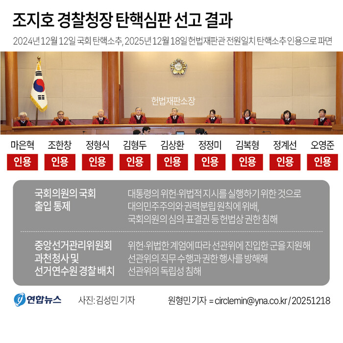 | ▲ 조지호 경찰청장 탄핵심판 선고 결과 (제공=연합뉴스) |