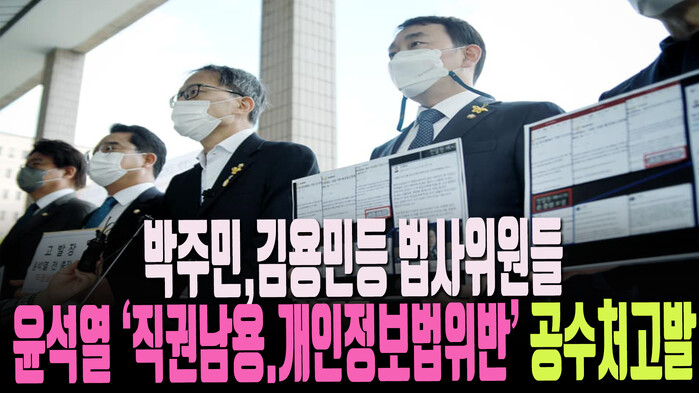 윤석열 전 총장이 제기한 징계 절차에 대한 재판이 지난주 행정법원에서 재판부 사찰, 채널A사건 감찰, 수사방해로 인한 정직" 2개월 징계는 적법했다고 판결" 했습니다. 그래서 18일 박주민의원, 김용민의원을 비롯한 법사위원들이 "직권남용 및 개인정보 보호법 위반 혐의" 로 고위공직자 수사처에 고발했다.