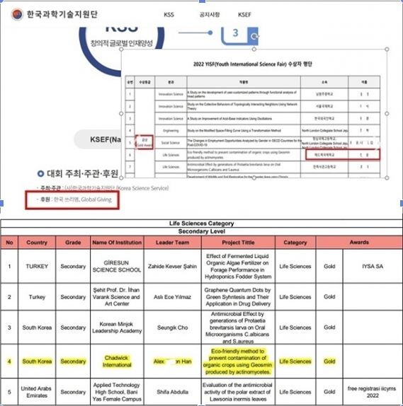 특히 한국 참가자가 모두 예외 없이 전원 수상하는 진기록을 세운 데다, 대회 후원사로 한 후보자 딸의 협조 이메일 요청을 받고 지난 2020년 11월 국내 복지관에 노트북 수십대를 기부했던 업체인 한국쓰리엠으로 알려져 눈길을 끌었다.