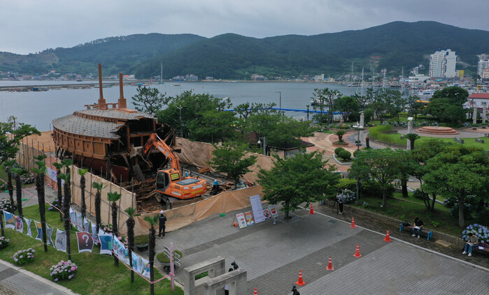 | ▲거제 거북선 철거 모습 (사진=연합뉴스) |