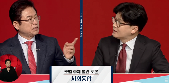 | ▲ 20일 국민의힘 대선 경선 토론 B조 이철우 후보와 한동훈 후보 (출처=국민의힘) |