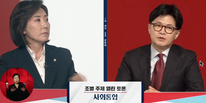 | ▲ 20일 국민의힘 대선 경선 토론 B조 나경원 후보와 한동훈 후보 (출처=국민의힘) |