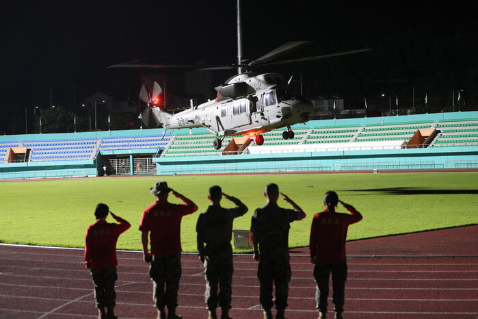 | ▲고 채 상병을 태우고 이륙하는 헬기 (사진=연합뉴스) |