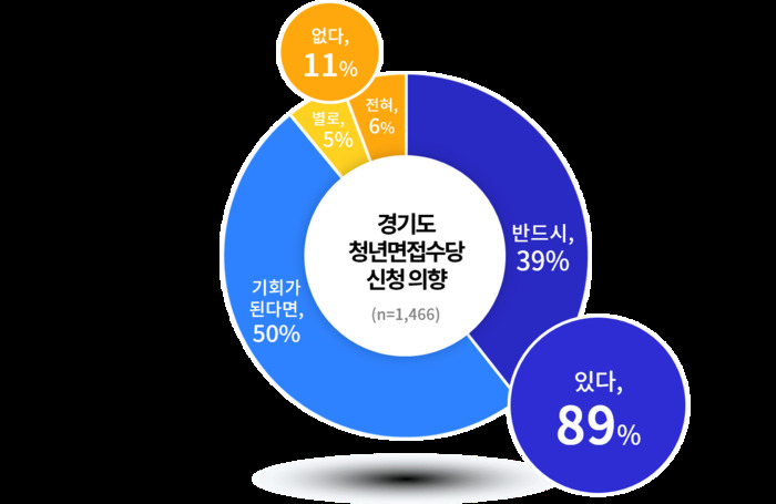 경기도 청년면접수당을 신청할 의향이 있냐는 물음에는 ‘있다’라고 응답한 비율이 89%로 나타났다.