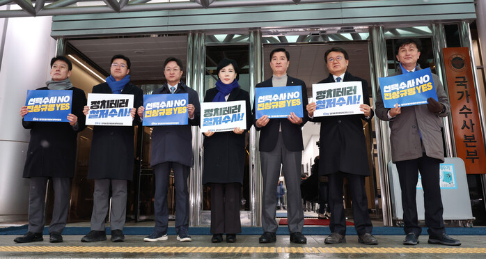 대책위원장인 전현희 전 국민권익위원장과 위원인 강병원·박상혁·이해식·황운하 의원 및 당 영입 인재인 류삼영 전 총경 등은 면담에 앞서 국수본 앞에서 '정치테러 철저 수사' 등의 문구가 적힌 손팻말을 들고 항의 시위도 했다.