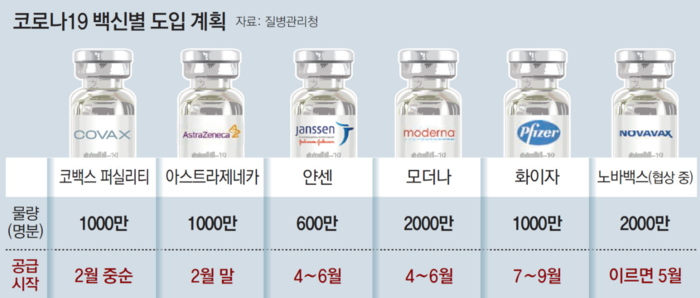 현재까지 공급사와 협의된 물량으로 이후 상황에 따라 일부 변동 가능성 있다. 이번에 코백스를 통해 공급되는 화이자 백신은 4월 1일부터 진행 중인 75세 이상 어르신 접종에 활용된다.