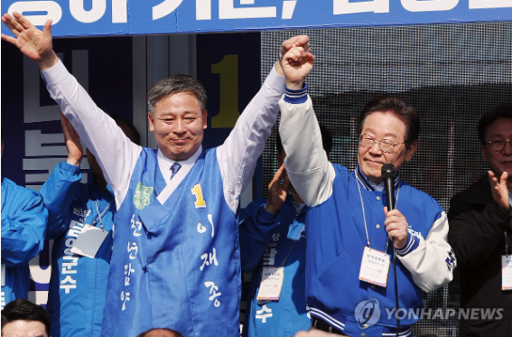 | ▲ 22일 담양군수 재선거 이재종 민주당 후보를 지원하는 이재명 더불어민주당 대표 (사진=연합뉴스) |