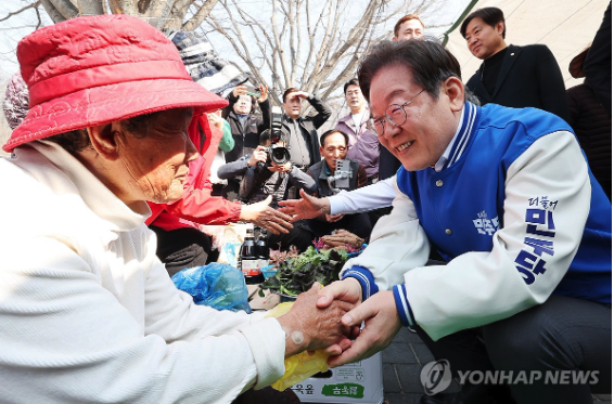이 대표는 이 후보와 함께 상인들을 일일이 찾아 악수를 하거나 상인의 눈높이에 맞춰 그들의 이야기를 경청했다.