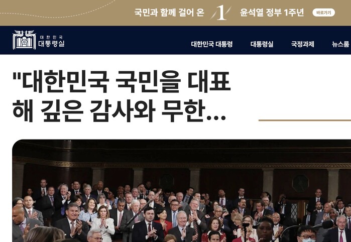 | ▲ 대통령실 홈페이지의 취임 1주년 홍보 이미지 (화면 캡쳐=대통령실 홈페이지) |