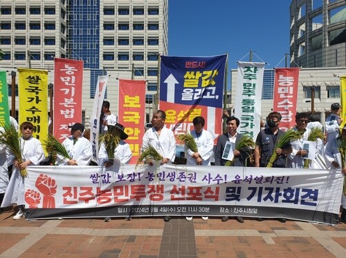 이어 "전체 농민의 60% 이상이 (쌀을) 재배하고 있고, 이들 농가 수입의 45% 이상을 책임지는 쌀농사가 망하면 농민은 죽음뿐"이라며 "정부는 생산비가 반영된 쌀값을 보장하고, 양곡관리법을 즉각 개정하라"고 덧붙였다.