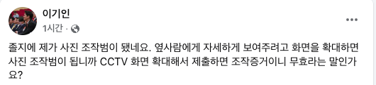 한편 이날 법원이 이 대표와 고(故) 김문기 성남도시개발공사 1처장이 함께 찍힌 골프 사진에 대해 “일부 조작됐다”고 판단을 내리자 관련 사진을 처음 공개했던 이기인 개혁신당 최고위원도 “조작이 아니다”며 강하게 반발했다. 이 최고위원은 이날 법원 선고 직후 자신의 페이스북에 “졸지에 제가 사진 조작범이 됐다”며 “옆사람에게 자세하게 보여주려고 화면을 확대하면 사진 조작범이 됩니까 CCTV 화면 확대해서 제출하면 조작증거이니 무효라는 말인가”라는 반문의 글을 올렸다.